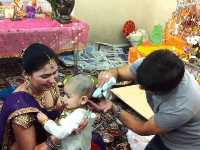 Symbolically the carrying out of the mundan ceremony or the first time shaving of baby hair signifies that the undesirable traits of the last life are left behind and the child can begin a new life. It is a thousand years old tradition that is still being followed in almost all parts of the country. It is a big celebration time for the family. After the mundan ceremony a small tuft of hair is left on the head. It is called the shikha which protects the brain. The length of the sikha depends on the gotra and other traditions of the family. The mundan ceremony is common for both girls and boys.